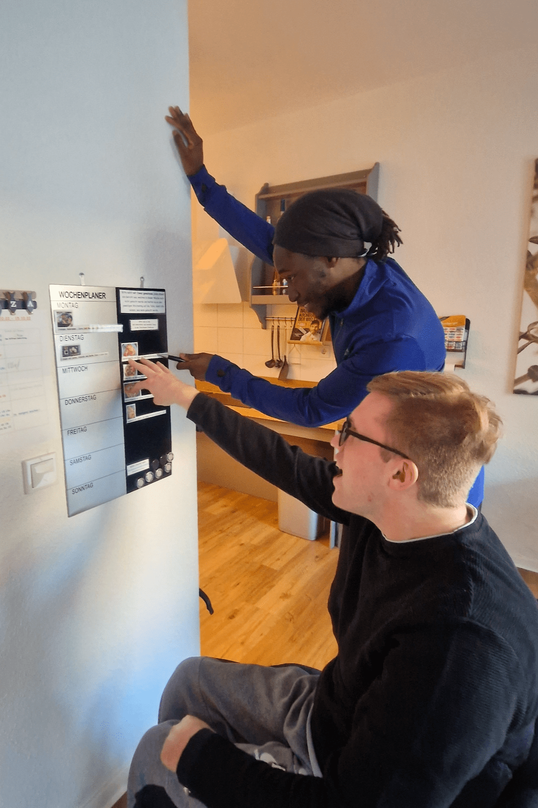 Jonas und Benjamin überlegen gemeinsam die Wochenplanung.