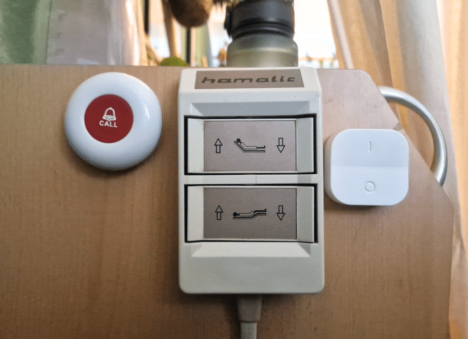 Zunächst diente Jonas eine Fahrradhupe, seine Assistent*innen in der Nacht zu wecken und ihre Hilfe einzufordern. Da dies aber offensichtlich mitunter nicht gut funktionierte, gibt es nun eine mobile „Klingel“ an seinem Bett, die man mit verschiedenen Lautstärken und Klingeltönen individuell gestalten kann. So fühlt sich Jonas sicher.